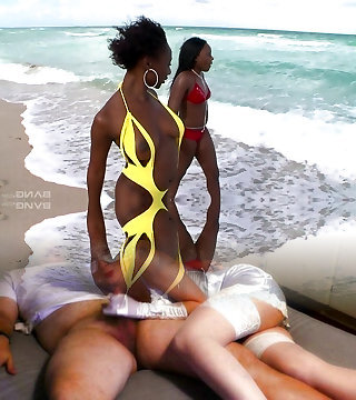 Beautiful lesbian duo at the beach