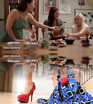 A calming evening quickly turns into an unexperienced lesbian group sex