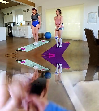 Fitness Rooms Lesbian threesome with gym yoga schoolteacher