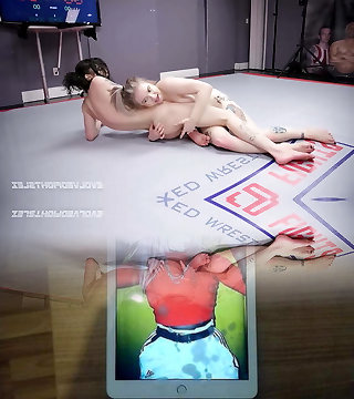 Lydia Black vs Kaiia Eve in rough lesbian strapon grappling