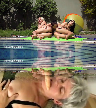 Three sexy Russian lezzies assfuck masturbation and pussy licking near swimming pool