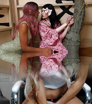 Cute pixie lesbian playing trib with a Nezuko Kamado. Devil slayer.