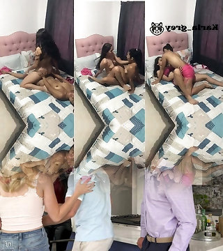 Wife shared husband, Threesome POV, Girl-on-girl kissing