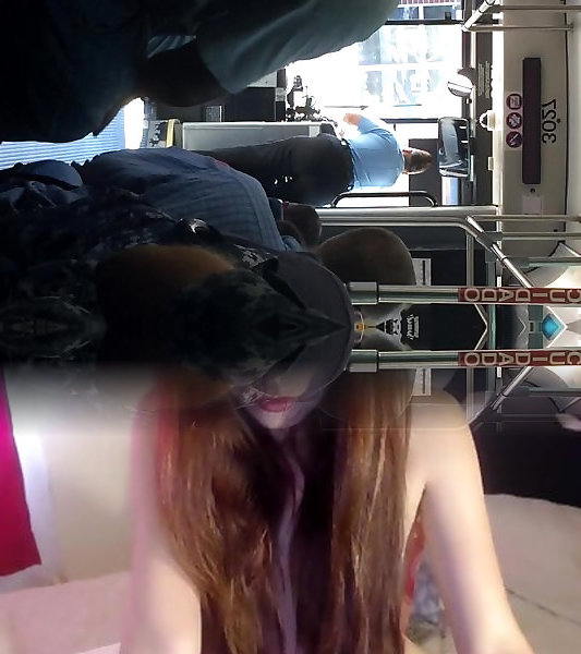 Long-haired dark haired babe caught upskirt on bus