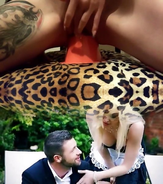 attaccare il suo twat con tre xxl faux-cazzi